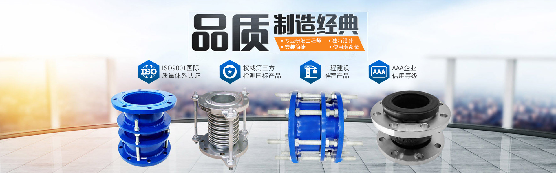 工藝精益求精、設計嚴謹科學,公司主要生產波紋補償器、橡膠軟接頭、各種管道閥門等六大系列數十種產品,目前已經服務全國21個省市自治區客戶!